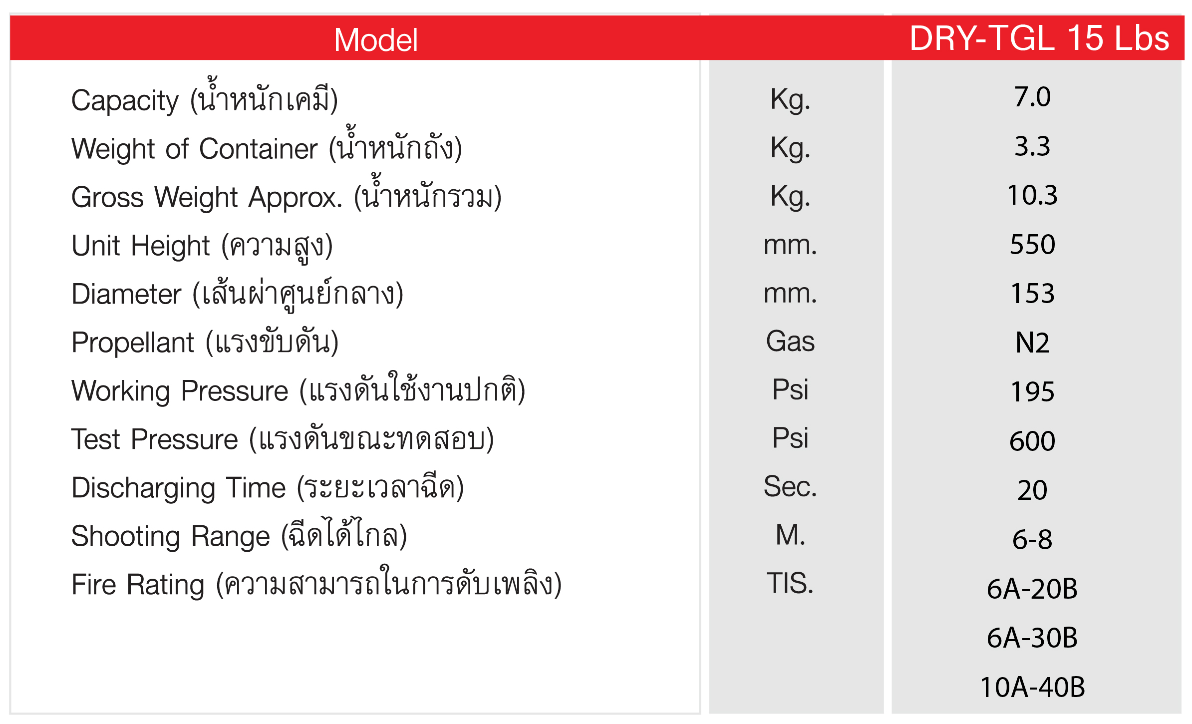 • ผงเคมีแห้งที่บรรจุเป็นผลิตภัณฑ์คุณภาพสูงจากประเทศเบลเยียม (Complies with EN615 standard)